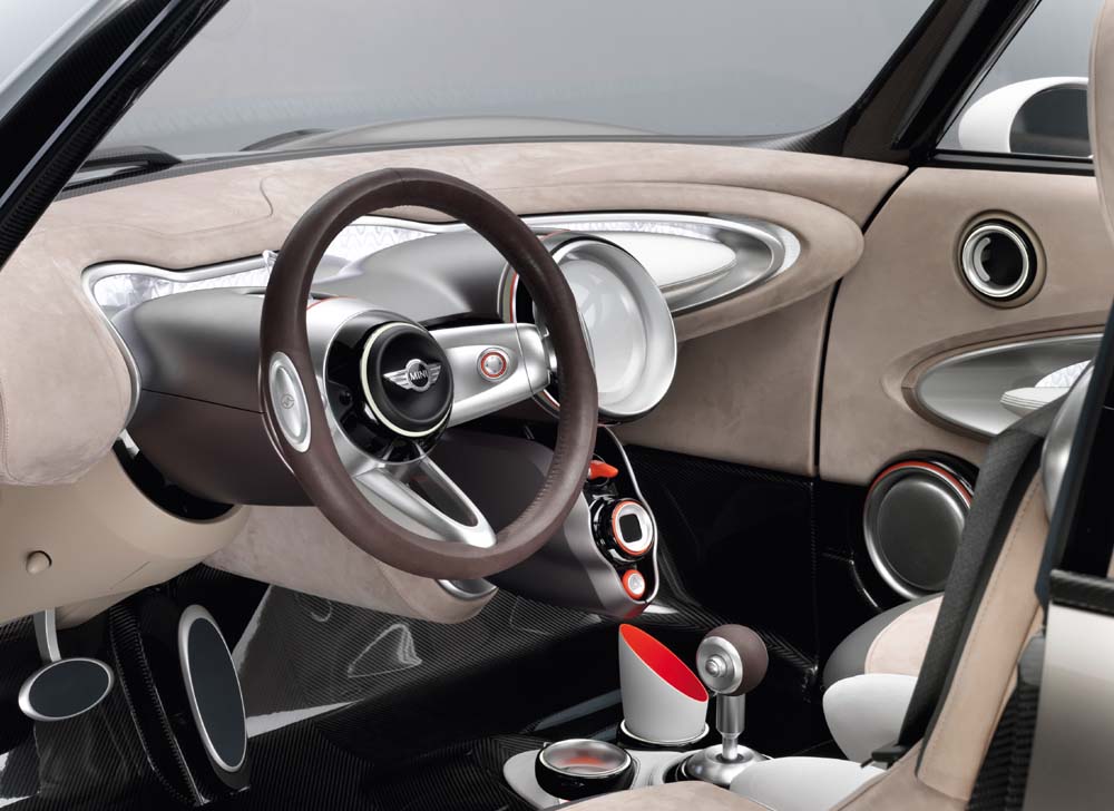 Za volantem je otáčkoměr s displejem palubního počítače. Uprostřed přístrojové desky se nachází velký rychloměr, v jehož středu je situován barevný displej s obdobnou grafikou, jakou mají stávající vozy MINI. Kromě tlačítek na volantu je součástí ovládacího konceptu také malý joystick mezi sedadly. Koncept však všechny ovládací prvky soustřeďuje na volant.