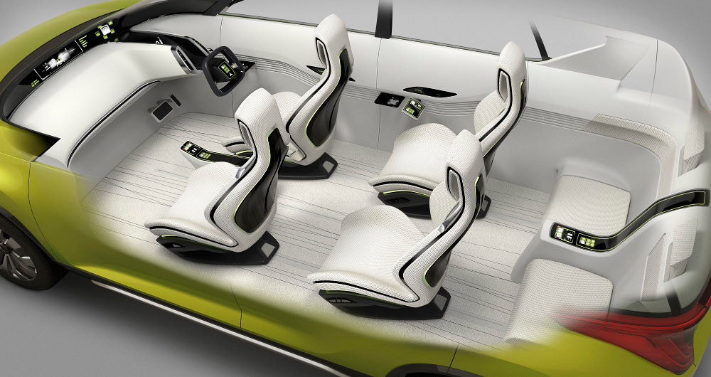 V interiéru se mohou cestující pokochat jednoduchým a jemným stylem. Prostorná kabina nabízí tři možná uspořádání sedadel a skýtá velkorysý prostor k převozu až šesti cestujících, nebo čtyř pasažérů s velkým zavazadlovým prostorem vzadu, anebo velký společný prostor mezi sedadly 2. a 3. řady, vč. možnosti otočit sedadlo řidiče a předního spolujezdce do konferenčního uspořádání.