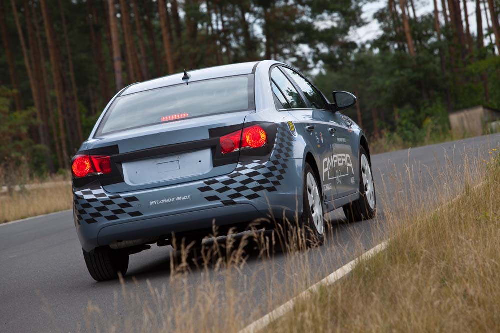 Jen několik týdnů před autosalonem IAA začal Opel ve vývojovém centru v Dudenhofenu testovat vývojové prototypy Ampera – elektromobilu s prodlouženým dojezdem E-REV, jeho zahájení výroby je plánováno koncem roku 2011.