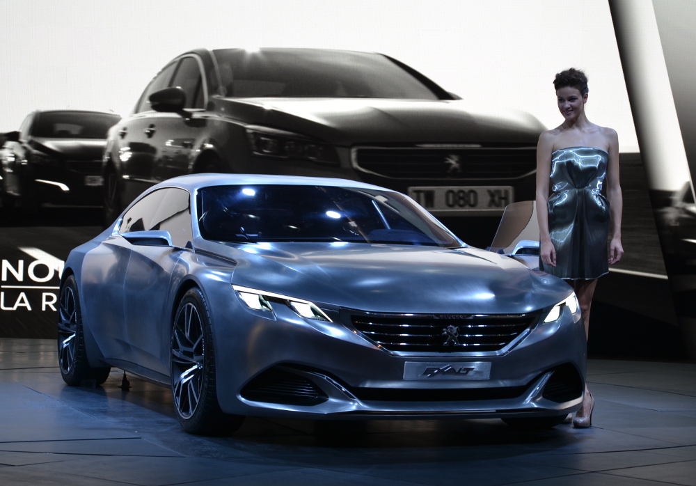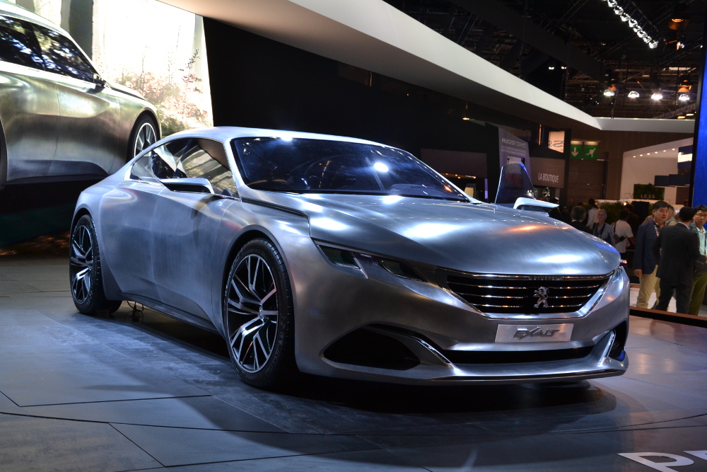 Peugeot představil na pařížském autosalonu koncepční vůz EXALT v novém provedení materiálů. Karoserie je zbarvená do odstínů šedé, od barvy surové oceli v ploše po odstín Shark Skin na hranách.