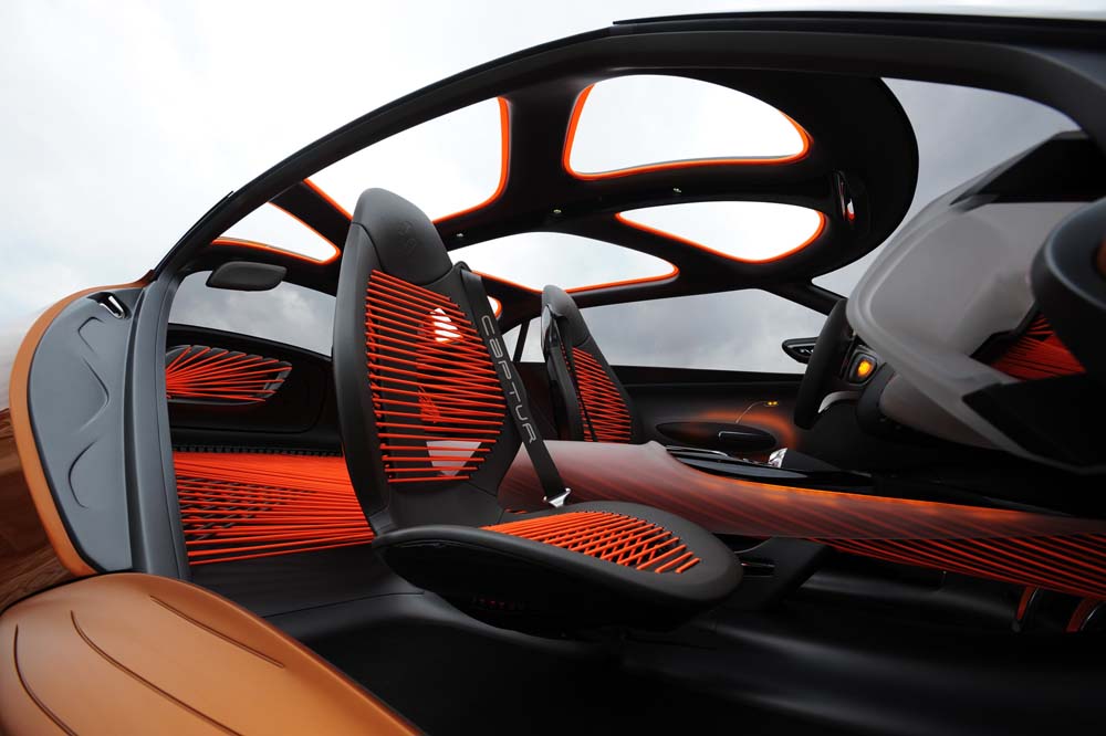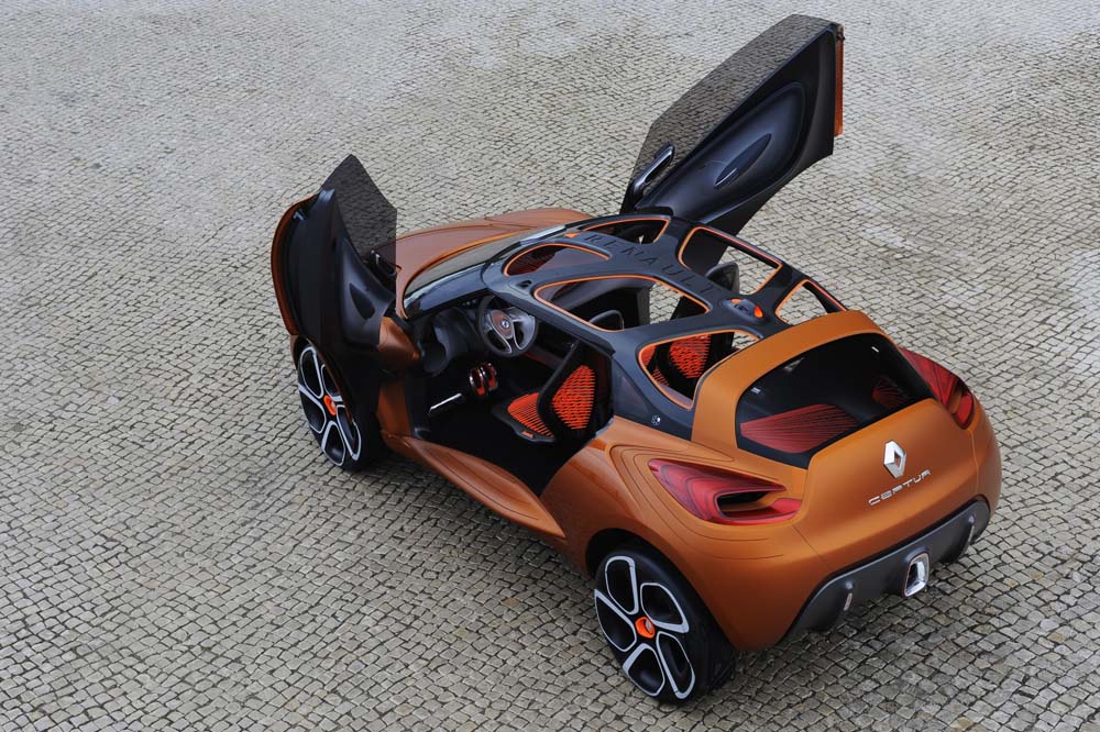 Captur dokáže víc, než vyvolat emoce. Je zároveň praktický i všestranný automobilem s pevnou odnímatelnou střechou, která po odstranění odhalí rám z uhlíkových vláken. Captur se může změnit z kupé na kabriolet, z městského vozu na terénní. Celkový sportovní dojem zdůrazňují vzhůru vyklápějící dveře a velké pneumatiky na 22“ černo-bílých ráfcích.