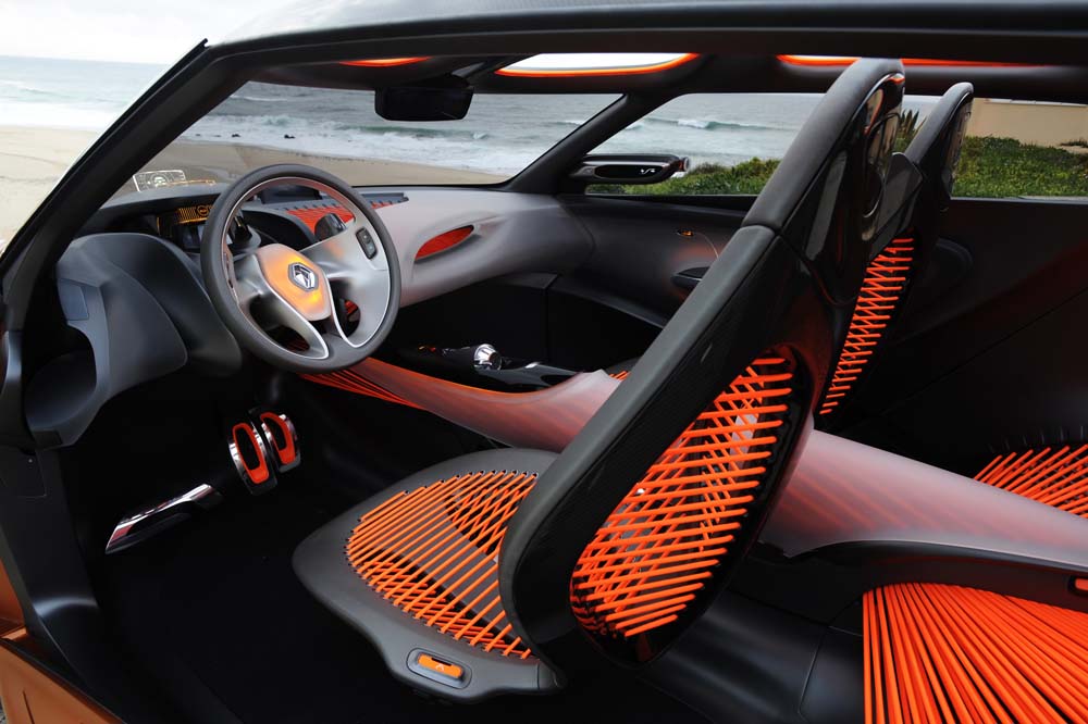 Interiér je přívětivý a upřímný. Designeři použili inovativní a důmyslné materiály, které jim umožnily pohrát si se světlem a optickými efekty. Středová konzole, obložení dveří a palubní deska jsou vyrobené z průsvitného materiálu. V přední části kabiny vzbuzují pozornost světélkující lana. Zadní část vozu tvoří v podstatě víceúčelový prostor, který rozděluje tři vrstvy lan: napnutá lana jsou uložena tak, aby umožnily bezpečné uchycení předmětů a zabezpečily variabilní zavazadlový prostor. Díky pružnosti celé struktury navíc umožňují příležitost k relaxaci. Jde o úplně nový typ komfortu, novou formu sezení, hodně podobné závěsné síti.