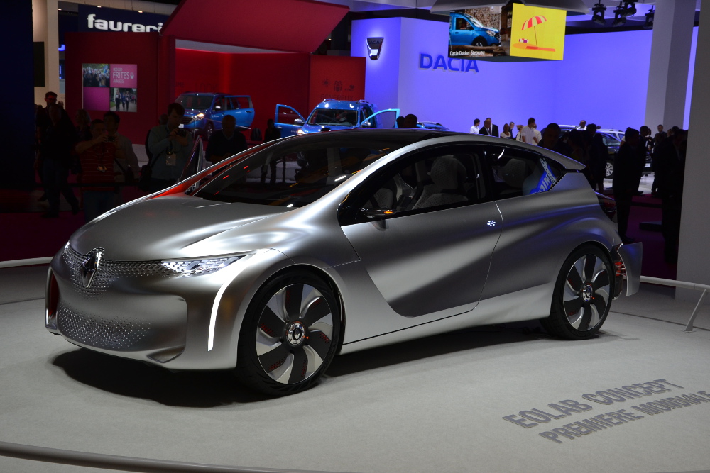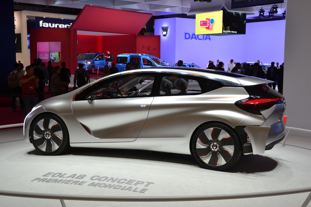 Na pařížském autosalonu představil Renault studii EOLAB Concept, koncept vozidla odkloněný od výzkumného prototypu EOLAB, který prozkoumává oblasti ultranízké spotřeby 1 l/100 km. Tím řeší prototyp dvojí výzvu.