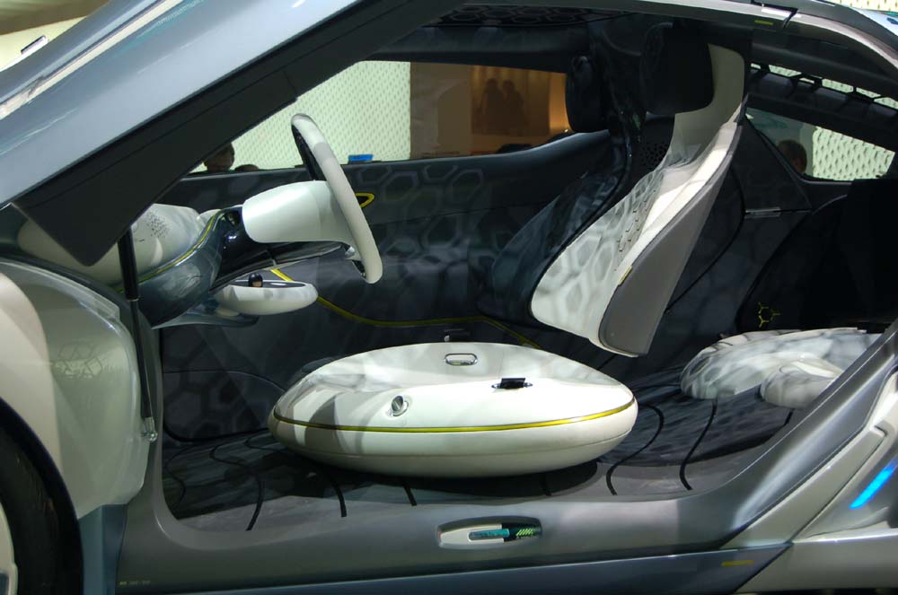 Přední sedáky mají tvar asymetrického válce. Opěradla jsou zavěšena na stropu vozidla. Zadní sedadla lze složit pro zvětšení objemu zavazadlového prostoru.