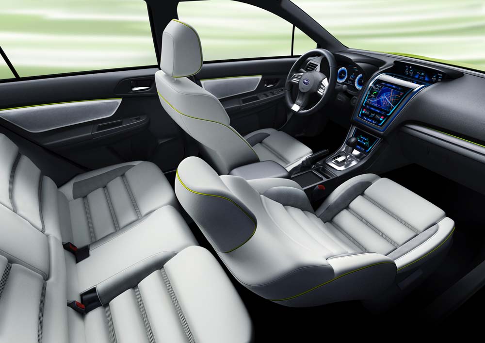 Koncept nabízí i originální asistenční systém EyeSight, jehož LCD monitor, umístěný mezi dvěma velmi dobře viditelnými ukazateli měřicích přístrojů0,, umožňuje řidiči sledovat snímky pořízených stereo kamerami.