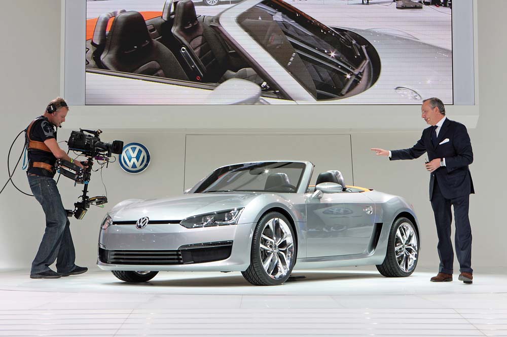 Na autosalonu v Detritu představuje Volkswagen cenově dostupný, neobvykle hospodárný a maximálně agilní roadster Concept BlueSport s uprostřed umístěným motorem. Jestli se bude vyrábět, ukáže teprve čas.