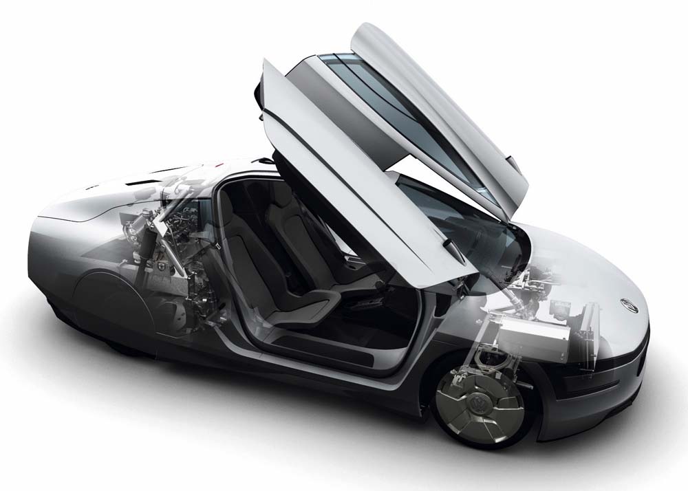 Technicky náročná lehká konstrukce (monocoque), dokonalá aerodynamika (cx = 0,186) a hybridní poháněcí ústrojí typu plug-in, tvořené dvouválcem TDI (35 kW / 48 k), elektromotorem (20 kW), sedmistupňovou dvouspojkovou převodovkou DSG a akumulátorem Li-Ion, umožnily snížit spotřebu na 0,9 l/100 km. Hybridní koncepce typu plug-in znamená, že prototyp XL1 dokáže navíc ujet vzdálenost až 35 kilometrů s čistě elektrickým pohonem. Akumulátor lze dobíjet z běžné elektrické sítě připojením do konvenční zásuvky. K dobíjení dochází prostřednictvím rekuperace (zpětné získávání kinetické energie) během brzdění, kdy elektromotor pracuje jako generátor.