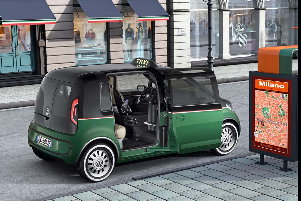 Klíčovým aspektem prezentace značky Volkswagen v Hannoveru je její elektrická strategie. Studie Milano Taxi s nulovými emisemi je založena na desítkách let praxe vývojářů, kteří mají se stavbou vozidel taxislužby bohaté zkušenosti. Elektrický koncept navržený pro městskou přepravu má zavazadlový prostor integrovaný uvnitř prostoru pro pasažéry a je vybaven speciálními dotykovými obrazovkami jak pro cestující, tak pro řidiče. Milano Taxi pohání elektrický motor s maximálním výkonem 85 kW, jemuž dodává energii lithium-iontový akumulátor uložený pod podlahou vozu. Maximální dojezd studie činí 300 km.