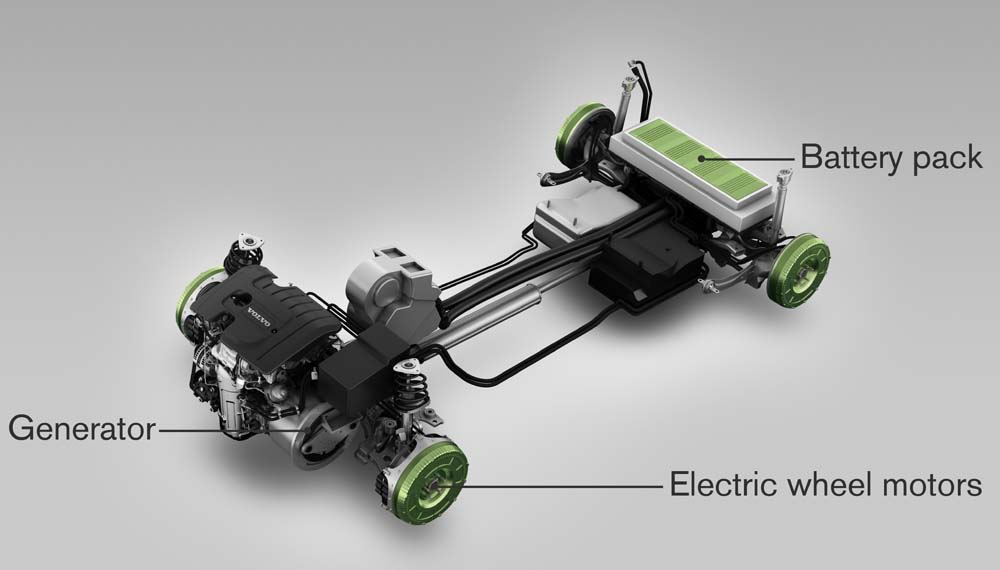 Volvo ReCharge Concept je v zásadě elektromobil s výkonným generátorem (pomocným zdrojem energie označovaným jako Auxiliary Power Unit (APU)), který se aktivuje v okamžiku, kdy se úroveň nabití baterií stane nedostatečnou pro adekvátní jízdní výkony.