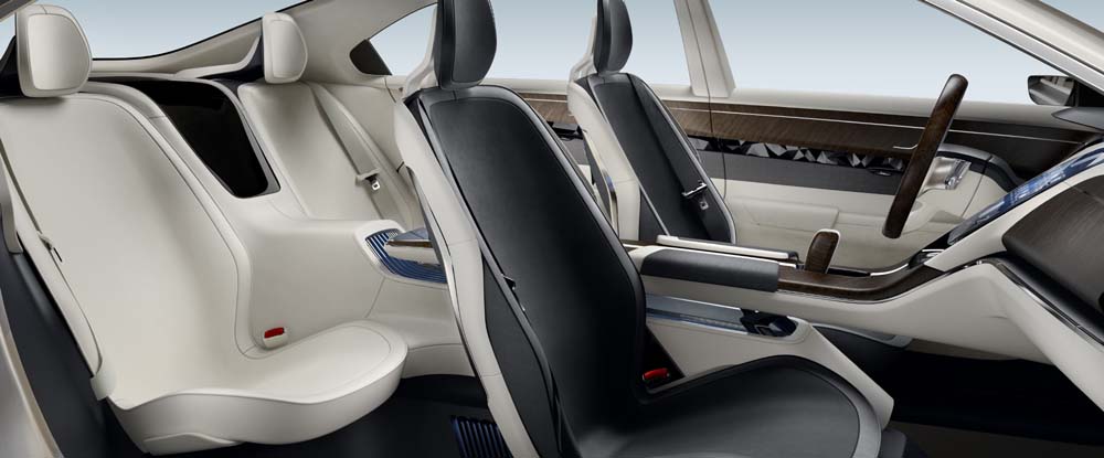 Dynamický pocit a tmavé barvy předních sedaček se směrem dozadu plynule mění ve světlou oázu klidu kolem zadních sedadel. Concept Universe je plný klasických tvarů, materiálů a textur, které společně působí dojmem jedinečného moderního luxusu.