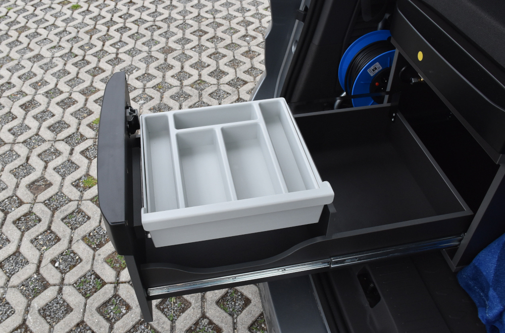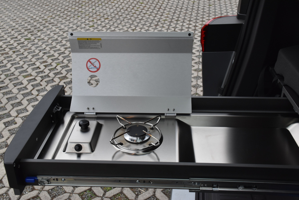 U verze Camper, na rozdíl od vyšší výbavy Ocean se musíte obejít bez kuchyňského koutu, dřezu, ledničky i sprchy. Ale pro vaření je připraven jedno hořákový plynový vařič, který se před použitím vysune dozadu po otevření zadních dveří. Ty případně poslouží jako ochrana před deštěm. Nechybí ani skříňka na drobné nádobí a další úložné prostory. Na druhou stranu, ale máte větší prostor na spaní.