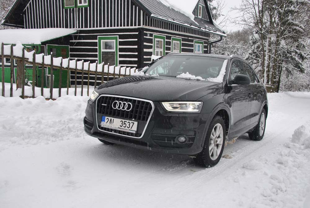 Už při podzimní prezentaci a prvních kilometrech nám Audi Q3 padlo do oka a těšili jsme se na jeho opravdové testování. Jak se říká, štěstí přeje vytrvalým. V okamžiku, kdy jsme si vůz přebírali zasypal naše hory sníh. Lepší okamžik jsme si ani nemohli přát.