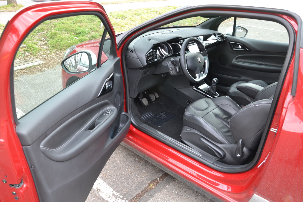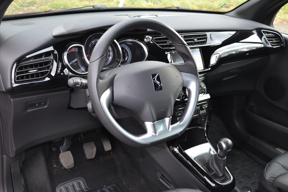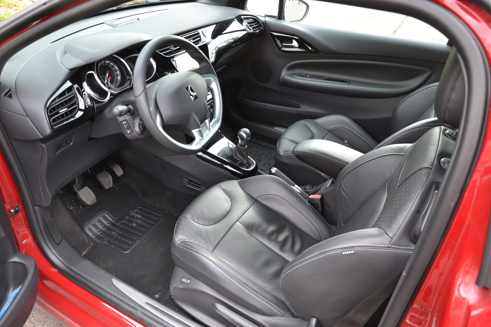 Po otevření dveří, mimochodem dlouhých 1,2 metru se před námi rozevře vstup do interiéru, který musí nadchnout každého sportovně založeného řidiče. Nízko umístěná sedadla mají skvělé boční držení, které vašemu tělu neumožní v rychlých zatáčkách prakticky žádný pohyb. Optimální je i jejich tuhost. Ačkoliv je DS3 pětimístný, tak dozadu se vejdou maximálně dvě osoby, které by ovšem měly být fyzicky zdatné a menšího vzrůstu. Přístup není právě jednoduchý, ale ještě, že jsou obě přední sedadla vybavena pamětí. Zavazadlový prostor má objem 285 litrů, ale naštěstí oproti verzi kabrio se stahovací střechou je dobře přístupný.