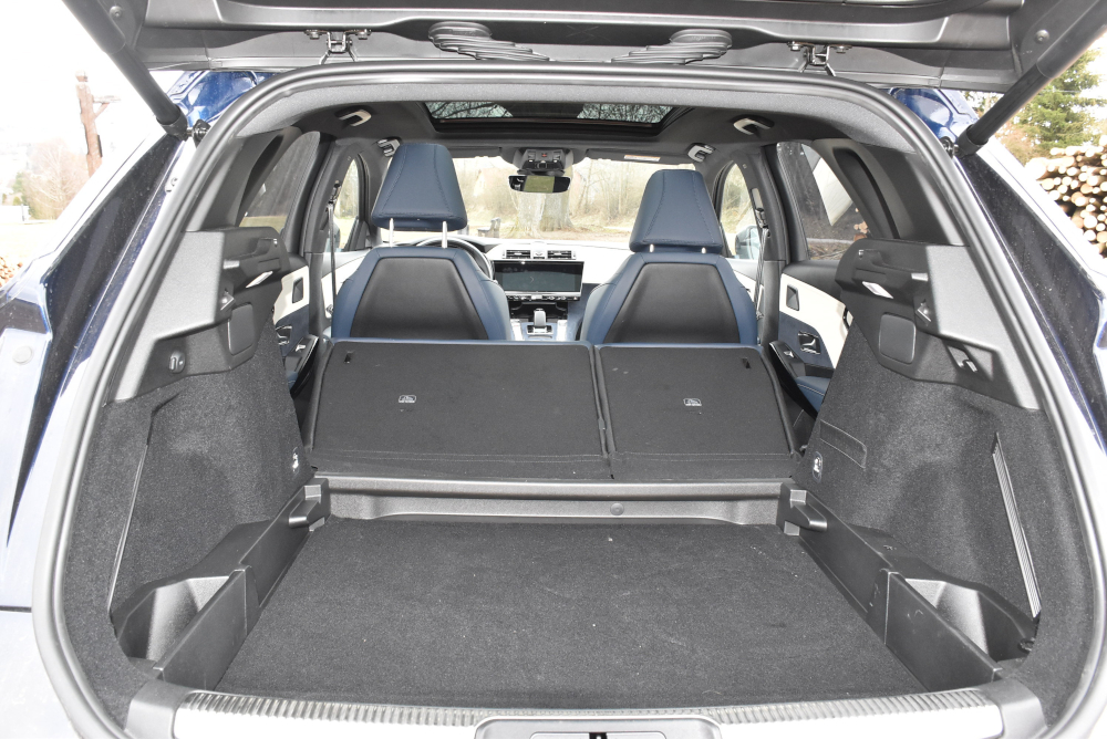 Přední sedadla, za příplatek s masážní funkcí, jsou velká a pohodlná, opěrku hlavy můžeme posouvat nahoru i dolů. Pohodlně se cestuje i na zadních sedadlech, přestože jsou pod nimi uloženy elektromotor a nádrž. Jejich opěradla jsou elektricky nastavitelná. Sedadla, ale i výplně a madlo dveří, loketní opěrka i střed volantu jsou potažené kůží Nappa. Zavazadlový prostor 555 litrů je dostatečně velký, po sklopení opěradel nám naroste na 1752 litrů. Ale musíte zapomenout na rezervu, na tu už prostor nezbyl.