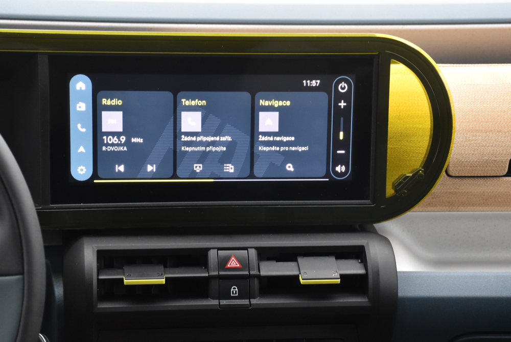 Před řidičem je sdružená přístrojová deska s uhlopříčkou 10,25 palce, vedle pak displej pro infotainment.V chladném počasí oceníte vyhřívaný volant ve stylu retro, dobře se drží. Ale ještě víc jsme ocenili ovládací panel klimatizace s fyzickými tlačítka. A k tomu ještě dvě tlačítka asistenta jízdních pruhů a překročení povolené rychlosti. Po každé jízdě je sice musíte deaktivovat stisknutím po dobu tří vteřin. Nic vám pak nezasuje do řízení a ani nepípá.