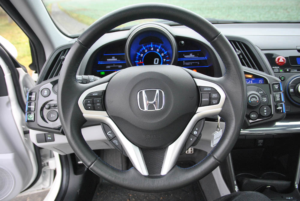 Širokými dveřmi se usadíme do nízko umístěných sedadel s kvalitním bočním vedením. Místa máme kolem sebe ve všech směrech dost. Zadní sedadlo je vhodné tak akorát pro malé děti, ale o tom nás už „varuje“ uváděná konfigurace 2+2. Přístrojová deska plná tlačítek, displejů a ovladačů si rozhodně nezadá s menším letadlem. Možná právě tady bere Honda, jako výrobce letadel, určitou inspiraci. Přístrojová deska nás doslova obklopuje, malý tříramenný volant se drží dobře a výtku nemáme ani ke krátké řadicí páce. Startujeme stisknutím tlačítka vpravo od volantu, ale ještě před tím musíme klíček zastrčit do skříňky zapalování a otočit.