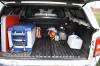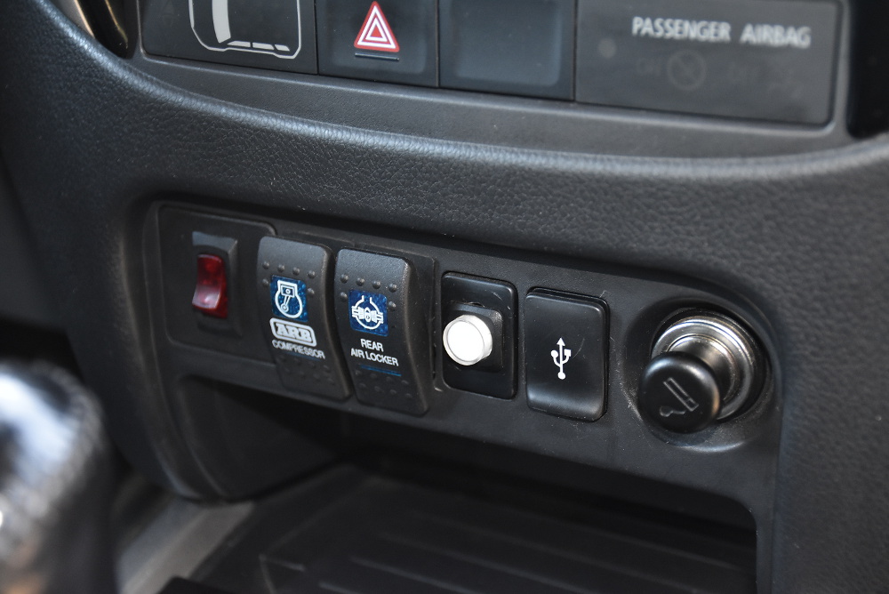 Pod pevnou nástavbou s uzamykateným oknem můžete kromě zavazadel upevnit už zmíněný naviják, dále kompresorovou lednici na 35 litrů s mrazákem, kempinkovou výbavu a další potřebné věci pro expedici. Uvítali bychom, kdyby byl do ložné plochby přístup ještě třeba odklápěcí přepážkou za zadními sedadly. Věci, které máte na korbě vzadu, jsou hodně špatně přístupné.