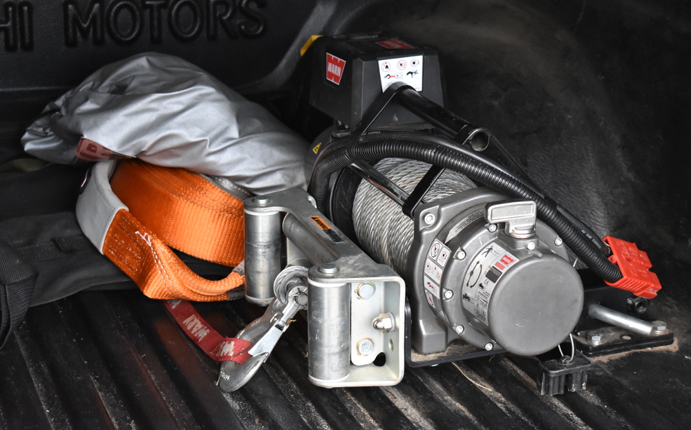 V případě, že byste uvízli a vlastní silou se z nesnází nedostali, potom vám pomůže výkonný naviják Warn M8000. Můžete jej uchytit buď vpředu na speciální konzoli nebo dozadu na tažné zařízení. Zásuvky navijáků mají speciální vypínače, aby nedošlo ke zkratu a poškození při brodění.