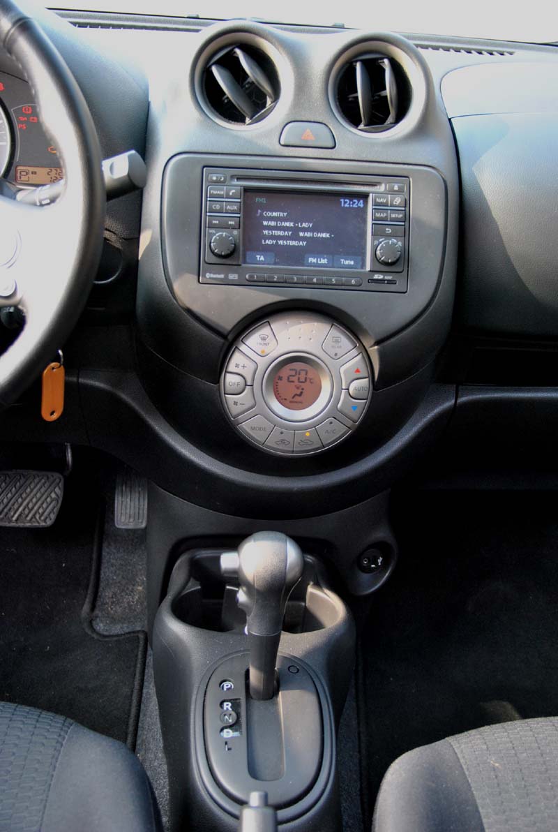 Pro Micru je zatím k dispozici pouze atmosférický tříválec 1.2 o výkonu 80 k v kombinaci s pětistupňovou mechanickou převodovkou ( ve čtyřech stupních výbavy) nebo bezestupňovou CVT, která se dodává pouze pro třetí výbavu Acenta. V nejbližší době, jak jsme již informovali, obohatí nabídku přeplňovaný zážehový tříválec 1.2 DIG o výkonu…Příznivci dieselů si musí nechat zajít chuť. Právě převodovku CVT jsme měli k dispozici a musíme říct, že splnila očekávání bezezbytku a do města ideální kombinace. Kupodivu, se to ani moc neprojevilo na spotřebě, pravdu musíte se naučit zacházet s plynem. Pak můžete dosáhnout spotřeby do 8 litrů, jinak jsme v průměru jezdili asi za 6,5 litrů benzinu. Ale to jsme využívali bezezbytku pružné charakteristiky tříválce, níž může mj. nízká pohotovostní hmotnost ca 940 kg. Největšího točivého momentu 110 Nm dosahuje ve 4000 otáčkách za minutu Právě dynamika atmosférického tříválce nás hodně překvapila při jízdě po dálnici i silnicích nižších tříd. Oproti třeba škodováckého tříválci 1.2 THP je rozdíl přímo propastný, Ani jsme nechtěli věřit, že máme pod kapotou jen tři válce, snad jen charakterický zvuk nás o tom ujišťoval.
