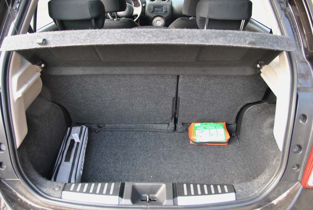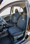 Komfort předních sedadel odpovídá charakteru městského vozu, multifunkční volant (nastavitelný pouze výškově) se dobře drží a jednoduché přístroje jsou dobře čitelné. Přístrojovou desku „osvěžuje“ stříbrný kruhový ovladač ventilace, jehož předností je lehká obsluha, nad ním je displej navigace.