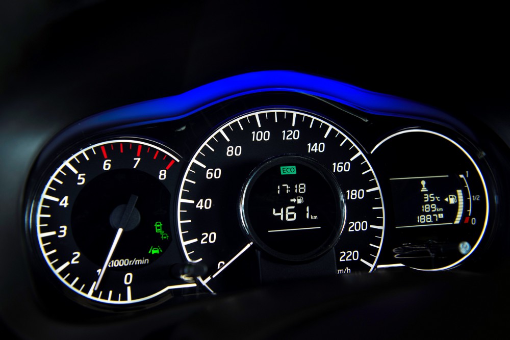 Interiér je velice moderní, přístrojová deska je převzatá z Micry, v zorném poli za volantem se nachází trojice přístrojí s velkým rychloměrem. Zajímavou drobností je nastavení automatické klimatizace v podobě ciferníku. Na středovém panelu máme monitor, na který se promítá obraz zprostředkující dění okolo vozu. S pomocí zadní kamery vidíme za vozem v úhlu 180 stupňů jak pevné překážky, tak nás upozorní na pohybující se postavy. Aby byl obrazu stále kvalitní, je třeba pečovat také o optiku. Záleží na zašpinění. Nissan za tím účelem vyvinul buď tlakové osušování vzduchem nebo tlakové ostřikování a následné sušení.