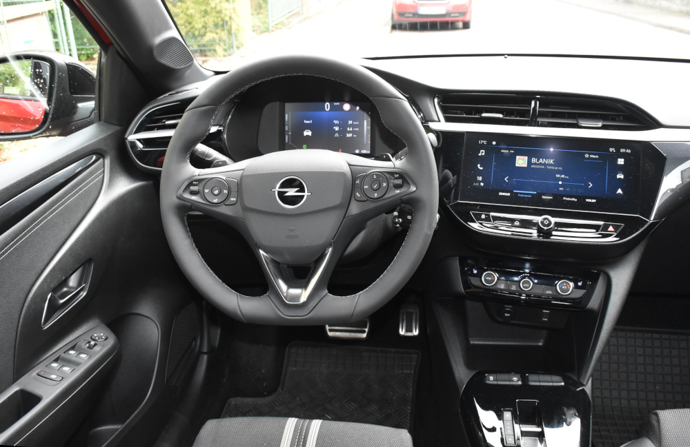 Pro test jsme si vybrali nejsilnější Corsu, tedy s přeplňovaným zážehovým tříválcem 1.2 T s výkonem 130 k doplněný elektromotorem s 48V mild-hybridním systémem. S benzinovým tříválcem s výkonem 130 k a elektromotorem 28 k dosahuje kombinovaného výkonu 136 k při 5500 otáčkách za minutu a točivý moment 230 Nm vrcholí při 1750 otáčkách. Kvůli nižším nákladům na údržbu používá řetězový rozvod, dále, turbodmychadlo s proměnnou geometrií lopatek a spalování s Millerovým cyklem pro lepší tepelnou účinnost.