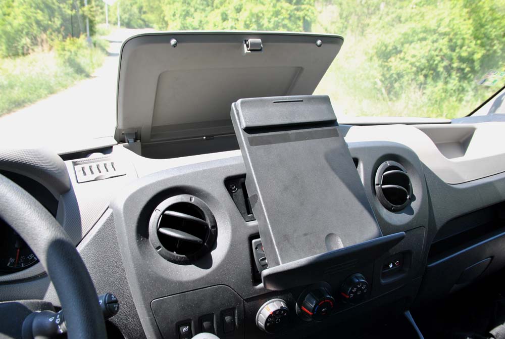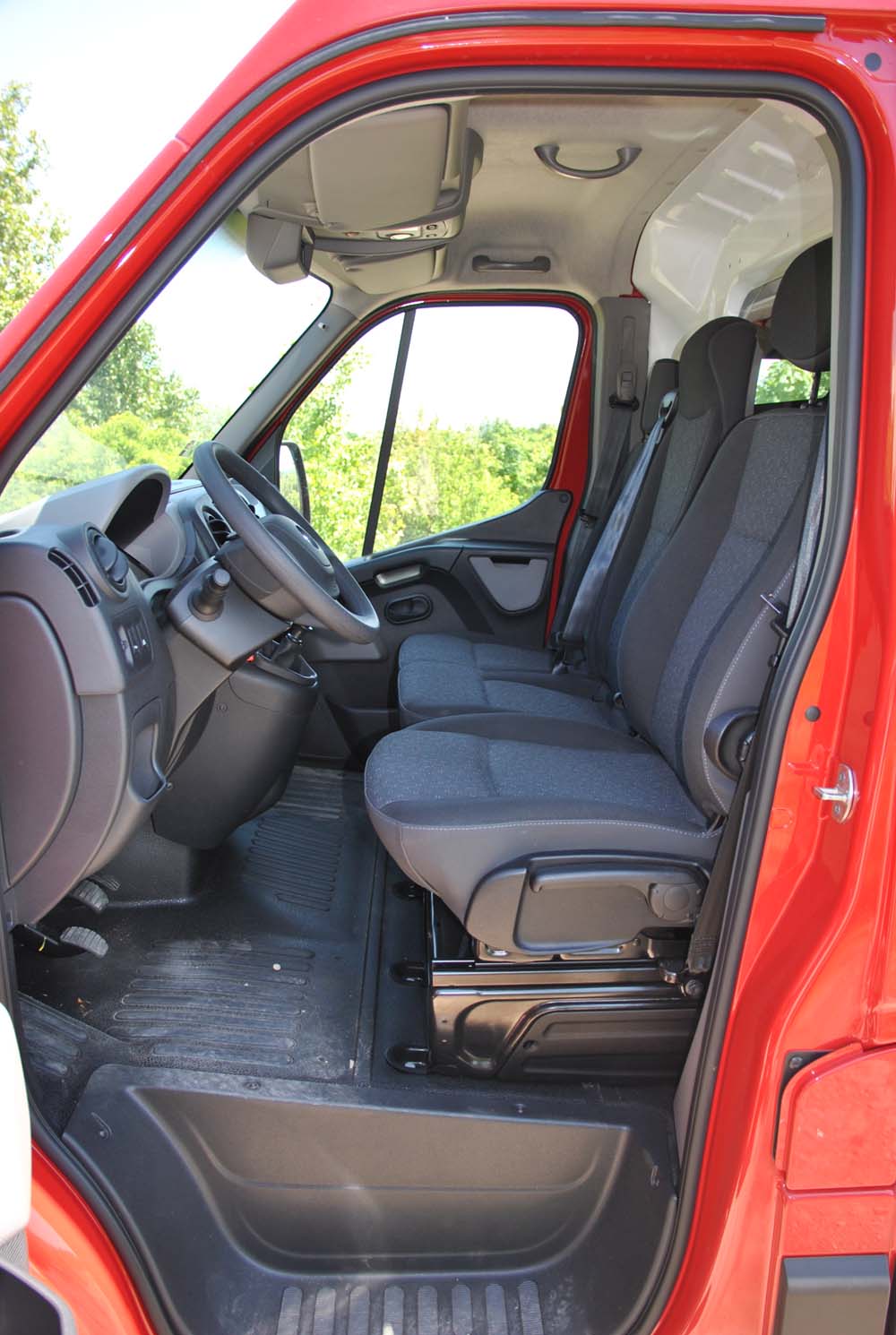 Sedadlo řidiče, bohatě nastavitelné ve všech směrech, je samostatné, zbývající dva cestující mají k dispozici pohodlnou lavici. V interiéru bylo vše podřízeno ergonomii, která je na jedničku. Řadicí páka je hned vedle volantu, dráhy řazení krátké a přesné. Všechny přístroje a ovladače jsou přehledně uspořádané. Jen displej radia je umístěn trochu nezvykle na místě vnitřního zpětného zrcátka. Testované Movano bylo navíc vybaveno paketem Office, který zahrnuje samé praktičnosti potřebné při podnikání. Například výsuvným držákem na písemnosti v palubní desce, otočným stolkem v zadní straně sklopného prostředního opěradla lavice, kapsou ve dveřích nebo krytou odkládací schránkou velikosti A4 na palubní desce.