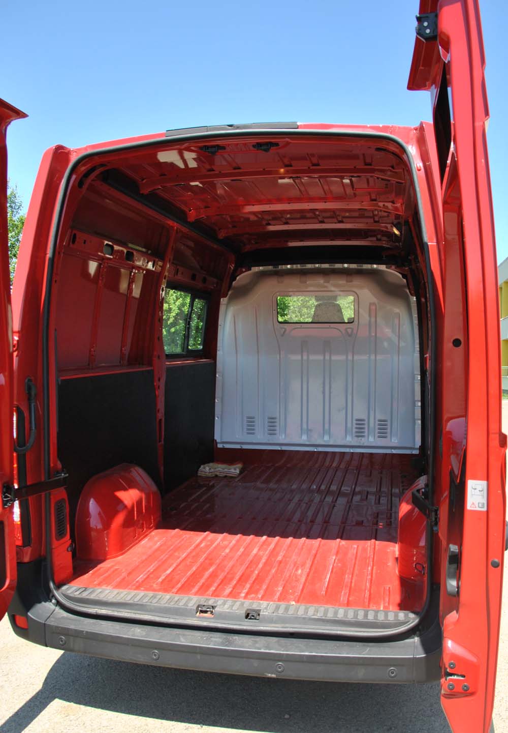 Nákladový prostor, v našem případě o délce 3100 mm, šířce vpředu 1765 mm, mezi podběhy 1350 mm a s výškou 1890 mm, je dobře přístupný zadními křídlovými dveřmi nebo bočními posuvnými na pravé straně vozu.