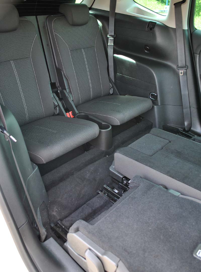 Zafiru si můžete dopřát v pěti- nebo sedmimístném provedení (příplatek 17 000 Kč, v nejvyšší výbavě Cosmo je třetí řada v ceně), jako v našem případě. Druhou řadu už netvoří lavice, ale tři samostatná a velice pohodlná sedadla. Pokud si připlatíte 6100 Kč za tzv. Lounge Seats, potom můžete obě vnější sedadla posouvat o 210 mm podélném směru, ale také o 50 mm směrem do středu, a to je jedna z největších novinek. Komfortní cestování zvyšuje možnost nastavení sklonu opěradel do čtyř poloh. To není všechno. Prostřední sedadlo lze přeměnit na loketní opěrku. K manipulaci se sedadly slouží barevně označené popruhy – červený je na sklopení, černý k vytahování.
