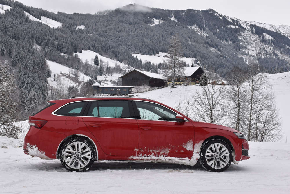Protože jsme test chtěli využít pro cestu na veteránskou Planai Classic, a tak jsme zvolili raději verzi 4x4. co kdyby byl náhodou sníh. A skutečně byla a nebylo ho málo. Přes noc napadlo skoro třicet centimetrů sněhu. Trasa vede po vedlejších cestách, samozřejmě zasněžených a „čtyřkolka“ se nám osvědčila a mohli jsme ji vyzkoušet opravdu naplno. Sílu na všechna kola přenáší systém Haldex páté generace, který připojuje zadní kola ještě, než se protočí přední kola. Čtyřkolku z dvoukolky máte dřív, než se nadějete a spojení ani nepostřehnete.