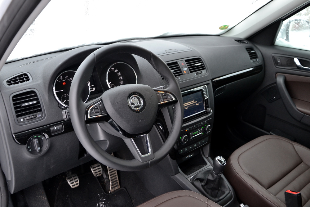 Na asfaltu nás Yeti překvapil výbornými jízdními vlastnostmi, dobře sedí také v rychlých zatáčkách, a to i přes vyšší světlost 180 mm i celkovou výšku 1,7 metru. Při výjezdu ze zatáčky cítíte přenos síly na zadní kola, kterou více než spolehlivě zajišťuje elektrohydraulicky řízená mezinápravová spojka Haldex už páté generace. Přestože je její konstrukční řešení jednodušší, tak pracuje ještě rychleji než dřív. Lamely spojky jsou k sobě přitlačovány tlakem oleje, který reguluje odstředivý ventil, jenž je součástí elektrického čerpadla. Oproti předchozí generaci je o 1,4 kg lehčí a bez oleje váží 6,6 kg. V běžném provozu je síla mezi nápravy přenášena v poměru 96:4, ale dokáže přenést dozadu až 90 procent točivého momentu. Díky elektronické uzávěrce diferenciálu EDS umí také rozdělit sílu mezi kola jedné nápravy. Nastavení podvozku, které je spíš tužší, nás opravdu mile překvapilo.