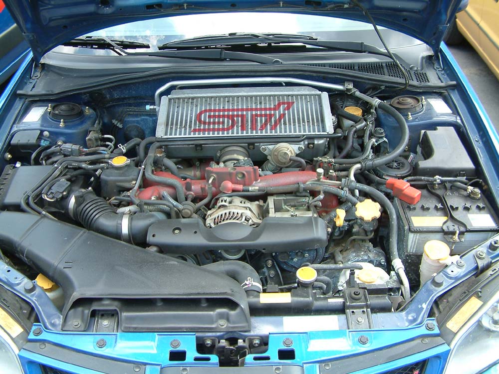 Sportovní provedení WRX STi pohání benzinový přeplňovaný čtyřválec boxer 2.5 o výkonu 280 k a točivém momentu takřka 400 N.m. Oproti předchozí dvoulitrové verzi umožňuje zvýšený objem motoru využívat točivý moment v širším rozsahu otáček. Je vybaven variabilním časováním ventilů AVCS, účinnější soustavou přeplňování s mechanickým ostřikem chladiče stlačeného vzduchu vodou, sodíkem chlazenými výfukovými ventily. Zmíněné hodnoty dělají z vozu opravdovou zbraň, zvláště pak v rukou méně zkušeného nebo nesoudného řidiče. S Imprezou STi lze jet samozřejmě i turisticky nebo po městě. V tom případě však motor dává najevo, že se při běžných rychlostech trápí, protože touží po vyšších otáčkách.
