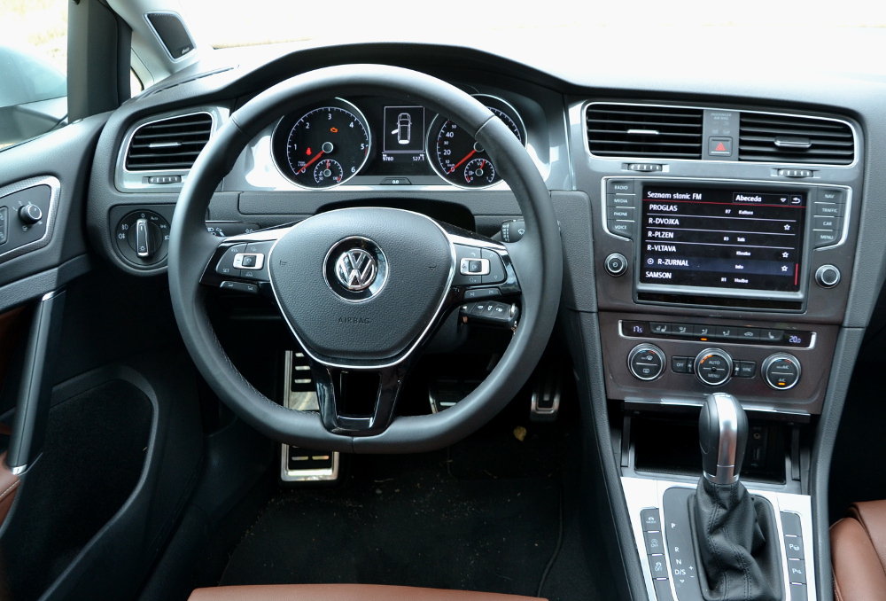 I přes větší výšku je v zatáčkách hodně stabilní, nenaklání se, k čemž přispívá i pohon všech kol přes spojku Haldex páté generace. Ten mnohdy uplatníme i na rozbitých cestách, kde jsme ocenili zvýšenou světlou výšku 175 milimetrů, tedy o 20 mm větší než u sériového Golfu.